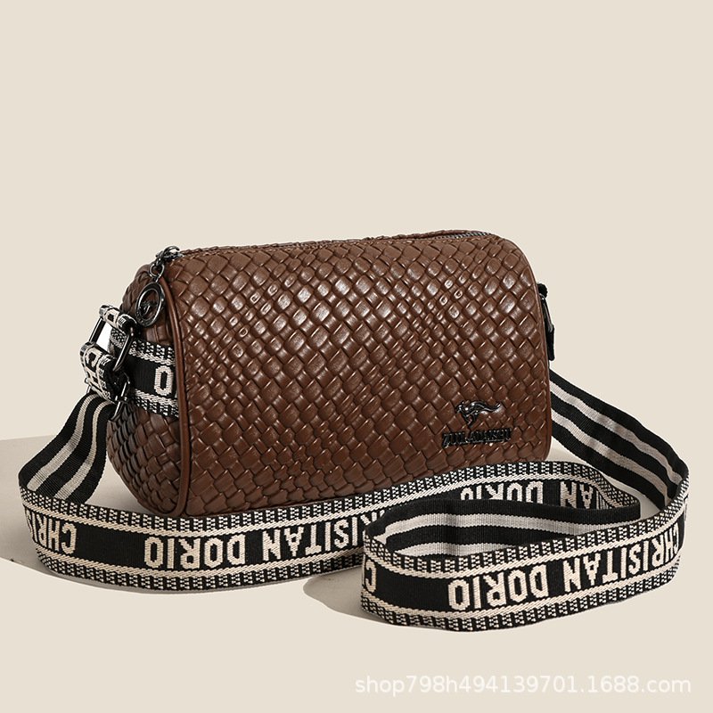 Top layer cowhide rhombic embroidery thread shoulder pillow bag