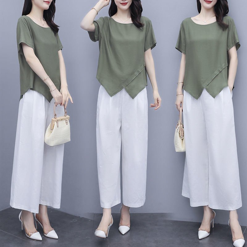 Casual wide leg pants two-piece set